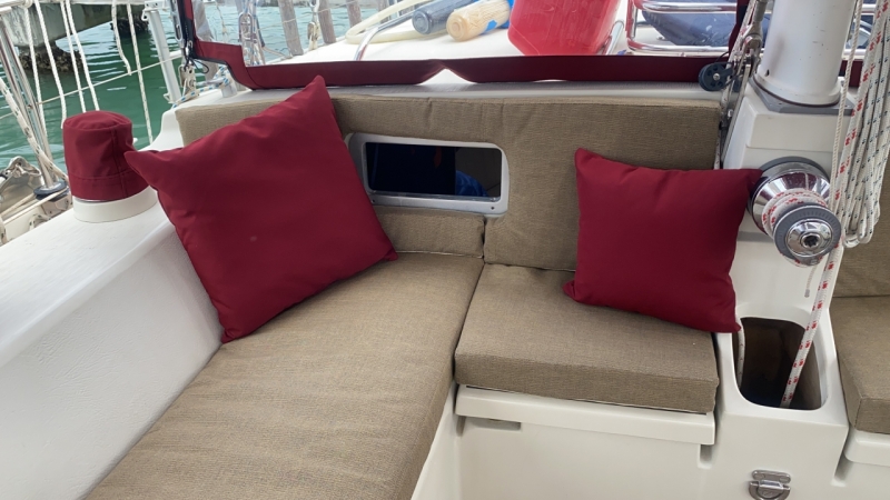 Replaced all the original upholstery with faux leather which looks amazing. The aft mattress was replaced memory foam in 2020 and is super comfortable. Clima compact 9 with a new digital control unit in the aft head 2022.