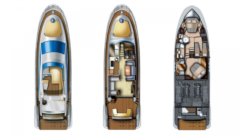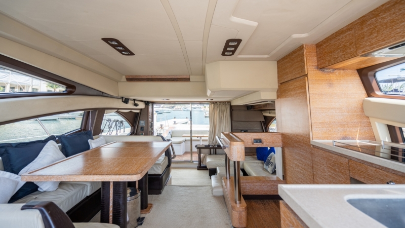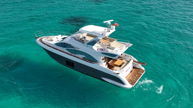 Azimut 54 flybridge motor yacht combines 3 stateroom/2 head (+ crew) functionality with elegant and refined aesthetics. The sun-pad in the bow comes with large cushions, for relaxing under the sun and enjoying beautiful sunsets at anchor. The cockpit combines style and functionality with large and enveloping seats. The interior is marked by clean design, plenty of light, comfortable sofas and a fully equipped galley.