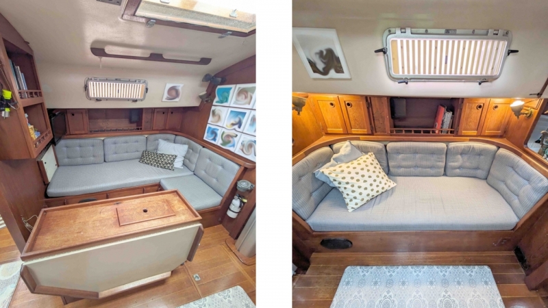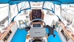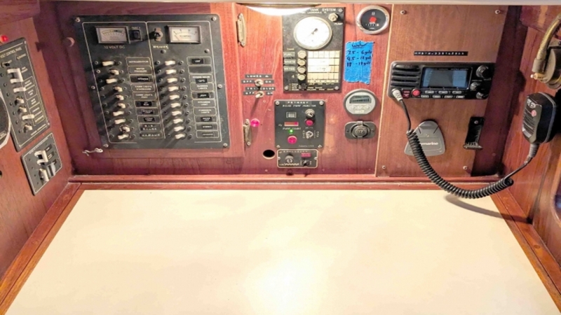 2022 rebuilt bilge pump system with “on” counter, high water alarm and primary and backup bilge pumps. All through hulls were upgraded to Marlon (superior since they don’t corrode and breakdown). 12v system with Xantrax battery monitoring system. 110v panel from shorepower or from 12v inverter. 2200W Pure Sine Wave Inverter 2021 wired to AC 110v panel. 2021 new house lead acid batteries 450 total amp hours. Rewired all 12v system from batteries to panel at that time. 2x190w solar panels (total 380watts) – each with independent Victron solar controllers. Air X 400 watt wind generator 2020 – new tri-color / new anemometer / new vhf cable and antenna / new steaming / deck light to LED when mast was down for rigging. 30 amp shore power with Xantrax 30 amp 12v batter charger. 2021 Espar Airtronic D4 (Eberspacher) Forced air diesel heater, tapped into diesel tank.