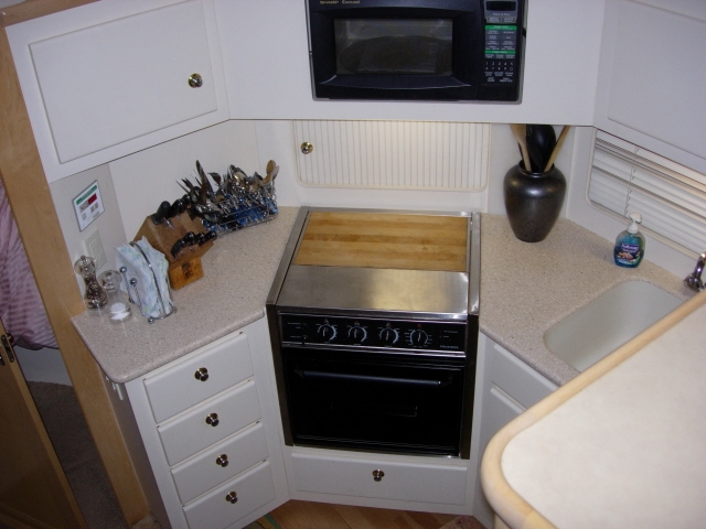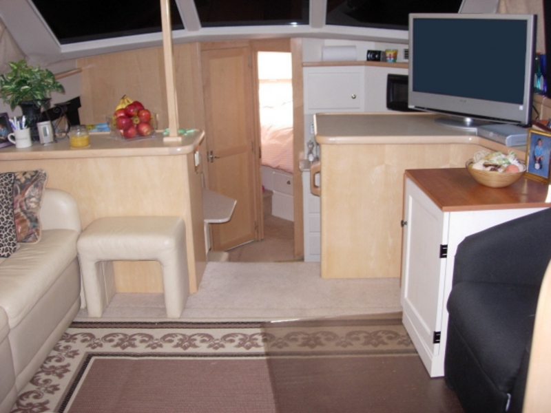 The Carver 405 is a very popular boat with its efficient use of salon/galley/dining space, private sleeping accommodations, huge covered aft deck for entertaining that rival larger Motoryachts. Her maple interior is bright and warm.