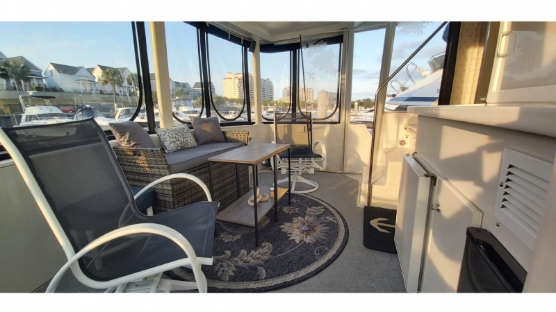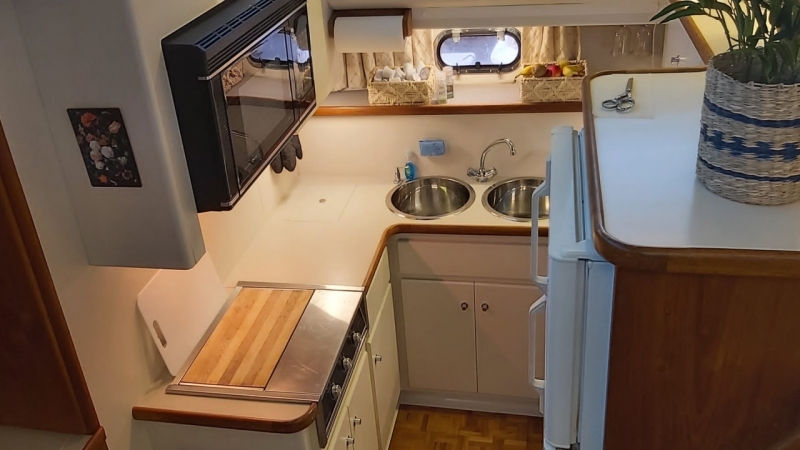 This 440 has spent most of its life under cover in the brackish waters of the northern Chesapeake Bay and with under 1300 hours on her recently serviced 3116 Cats, she has plenty of comfortable cruising ahead. The current owners have captained/crewed large private yachts and their knowledge shows in the condition of this boat. All systems are fully operational and this boat is in excellent cosmetic condition.