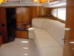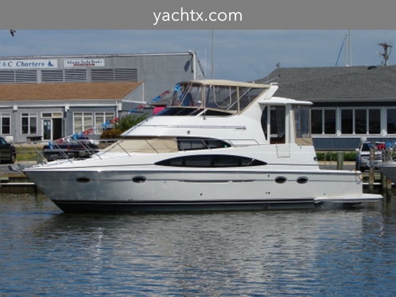 The Carver 444 Cockpit Motor Yacht combines the superb luxury and spaciousness of an aft cabin with exceptional contemporary styling and thoughtful design. Carver's signature raised walkdeck design also allows for a wider, much roomier cabin than other yachts this size. Combined with the way Carver united the salon and galley into one spacious and elegant "great room", this adds up to outstanding cruising comfort. The expansive great room features all sorts of amenities, from the sumptuous designer decor and UltraLeather sofa, to the beautiful yet practical solid-surface countertops. When it comes to sleeping accommodations, owners will welcome the unexpected luxury of two private staterooms, each with its own private head compartment.