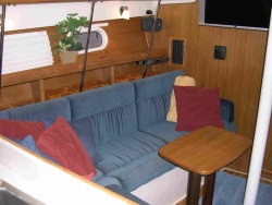 Extensive storage under port and starboard settees. Hella fans port and starboard (upgrade).