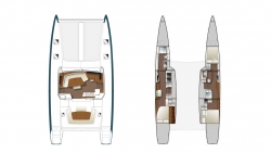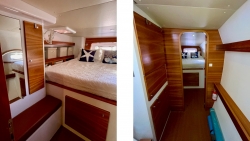 Entire port hull with large lockers, changing area and ensuite head. Opening ports in aft staterooms to transoms.