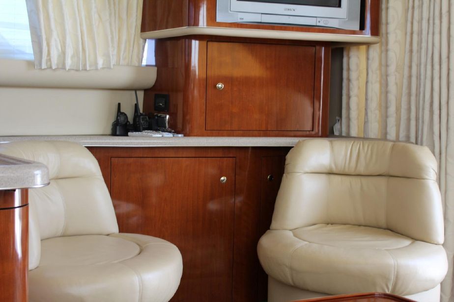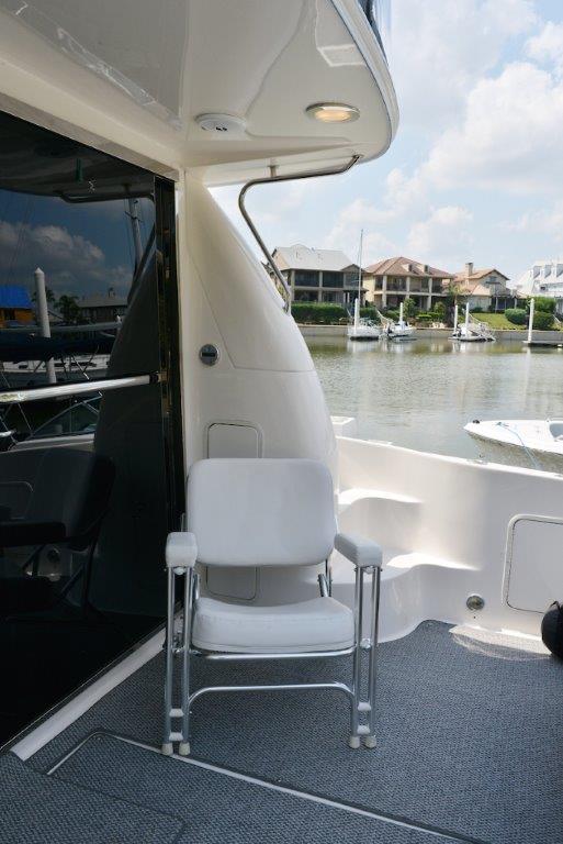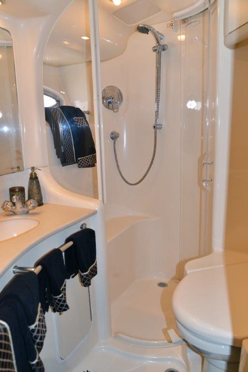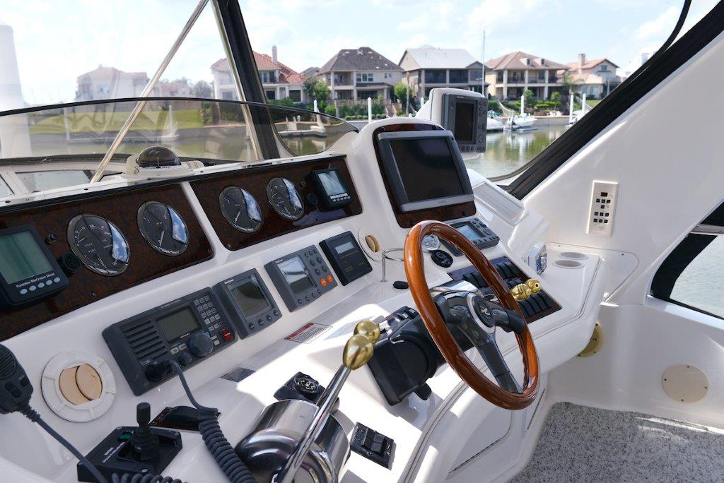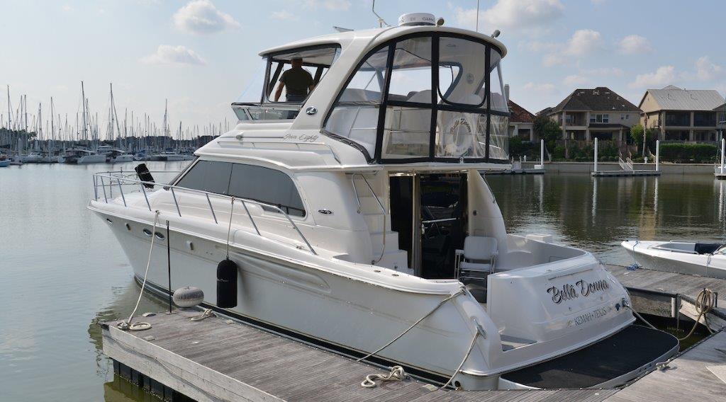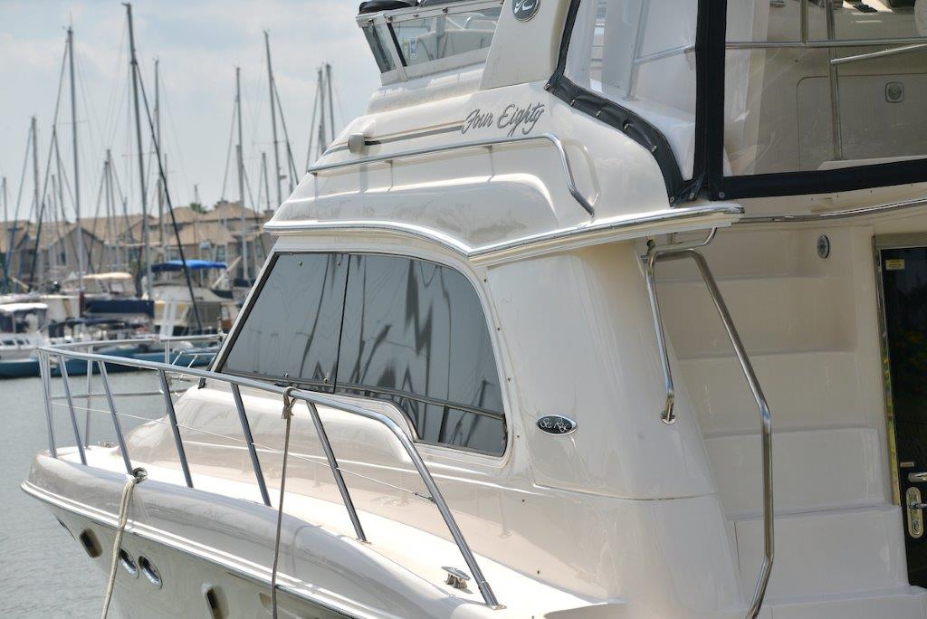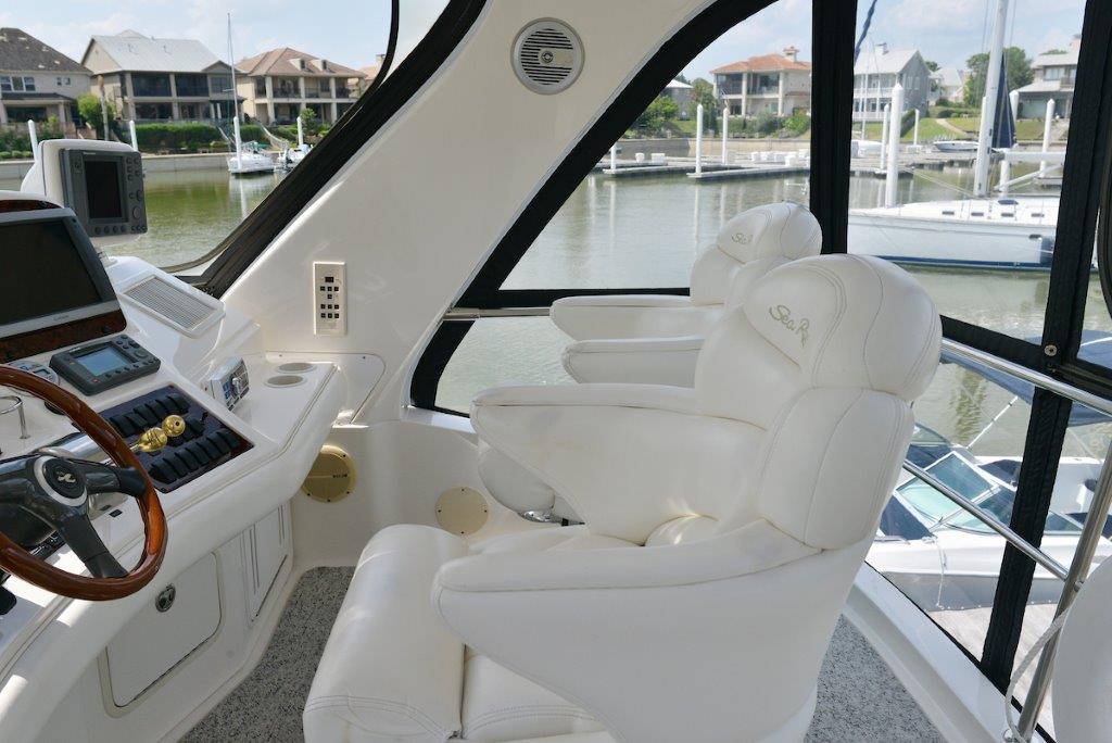 The Sea Ray 480 Sedan Bridge is an excellent boat for cruising and entertaining. Fast, stable and sleek, they are popular for good reason. If you’re looking for one of these, you’ll want one of this 2002 vintage with the updated layup, deck joint construction and Cummins power (earlier models have had moisture in the balsa core and turbo issues with the CAT 3196 engines). This particular 480 has the preferred Cummins QSM 11 engines, optional stainless salon doors and is meticulously maintained.