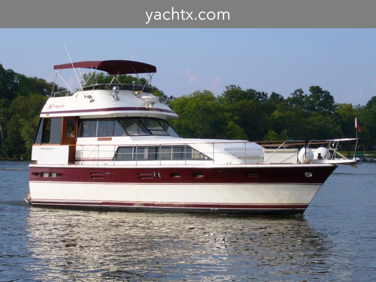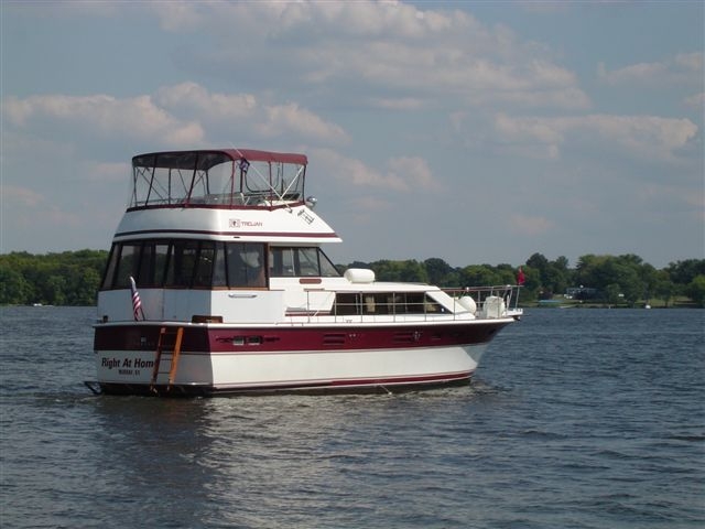 This is a classic example of the Trojan quality in excellent condition. Fully enclosed aft deck, teak wind doors, new carpets, curtains and many upgrades make this a great candidate for a live aboard. Wide side decks and easy fly bridge access make moving around easy and safe. This yacht is clean and ready to cruise.
