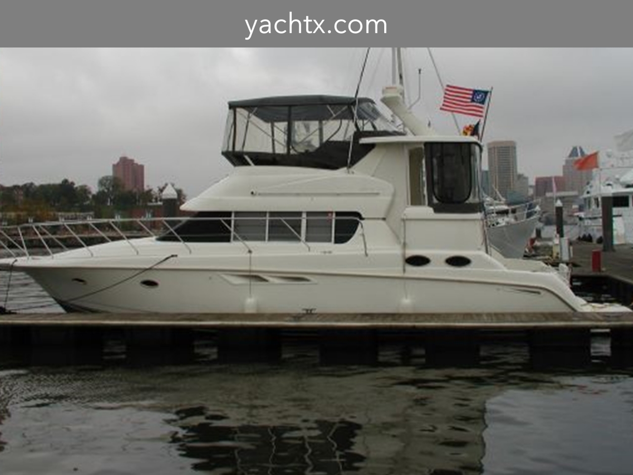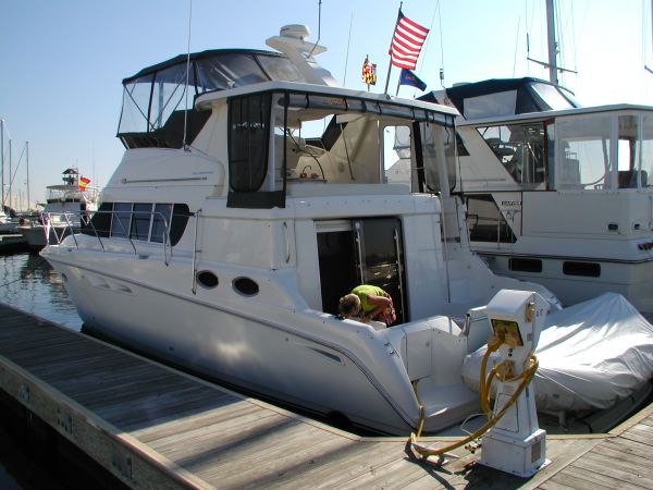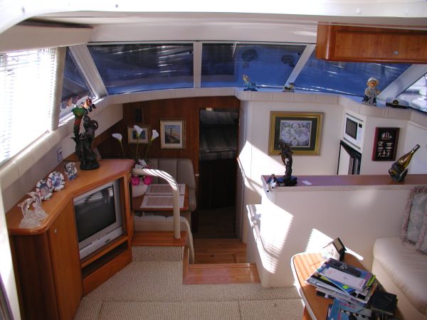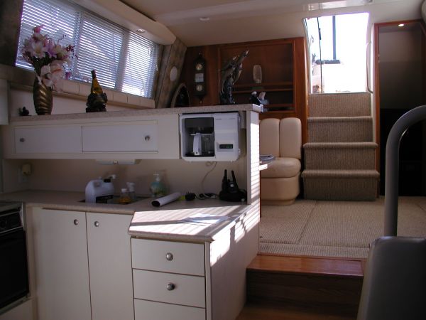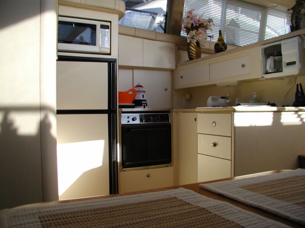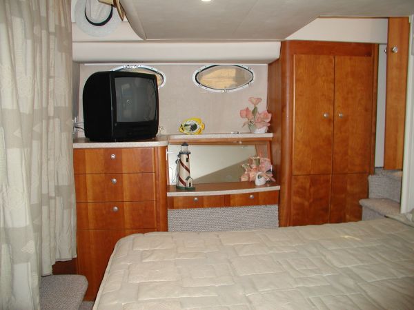 The Silverton 442 CMY os a well-styled family cruiser with a spacious two-stateroom floorplan and a fairly large cockpit. Built on a solid fiberglass, modified-V hull with a fully integrated swim platform. Nicely arranged dinette opposite galley. Converts to berth. There are full size berths in both staterooms and separate stall showers in each head. The yacht is in excellent condition.