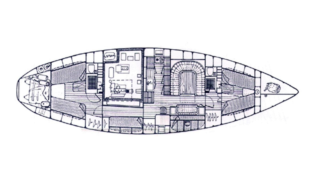 A renown classic blue water cruiser, the Super Maramu has a near cult-like following and for good reason. Her heavy, durable build, practical cruising layout and unique glass protected helm are unique in this class of sailing vessel.
