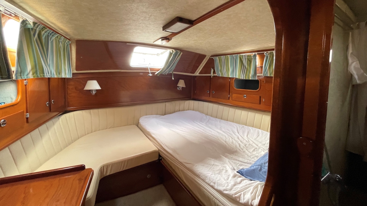 Replaced all the original upholstery with faux leather which looks amazing. The aft mattress was replaced memory foam in 2020 and is super comfortable. Clima compact 9 with a new digital control unit in the aft head 2022.