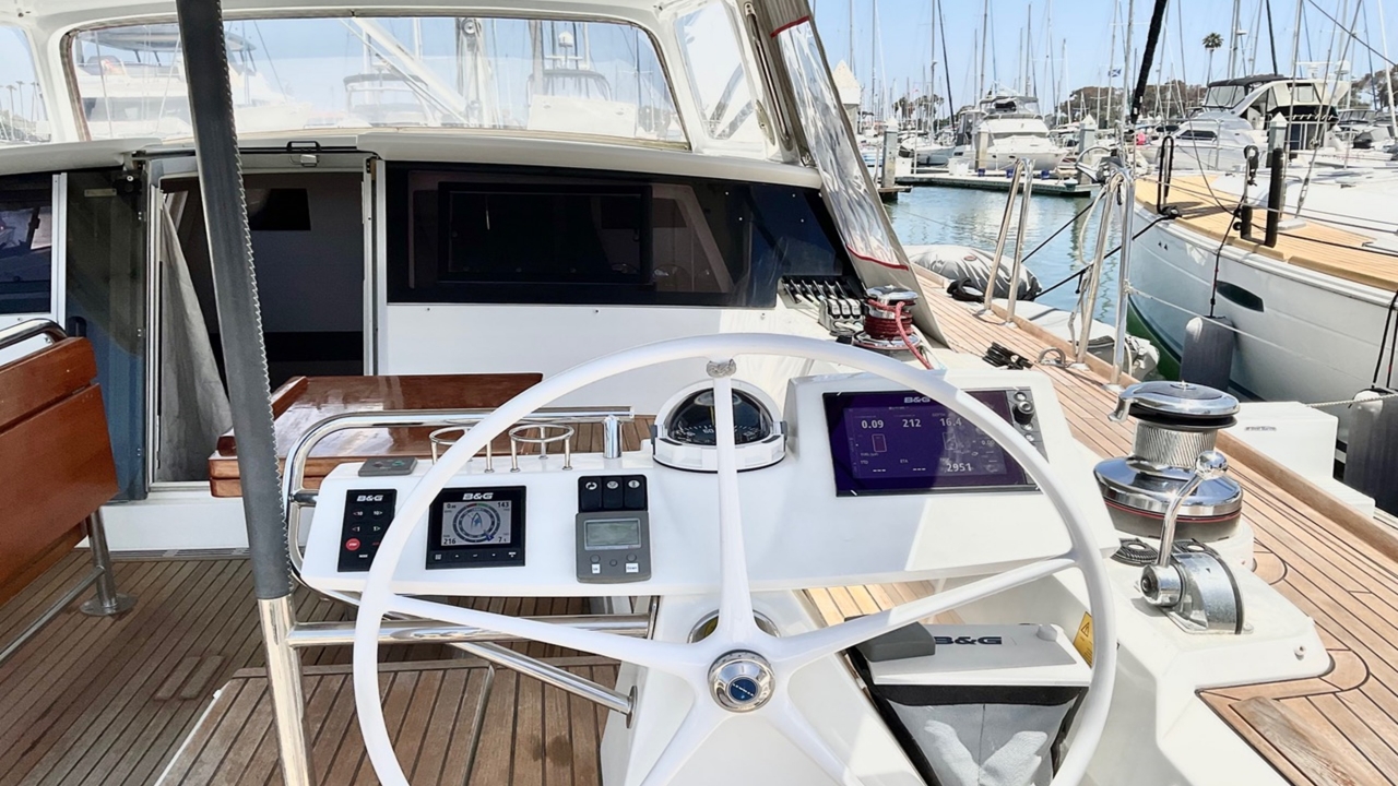 Features: Bow thruster, water maker, 7KW generator, retractable Bimini (2024) with custom solid dodger both housing 680W of solar, Victron MPPT controllers and Simarine power monitor, custom Awlgrip HDT paint (2021) and detail stripes, all PVC through hulls replaced with stainless steel, galvanic isolator (2023) and much more - see details below.
