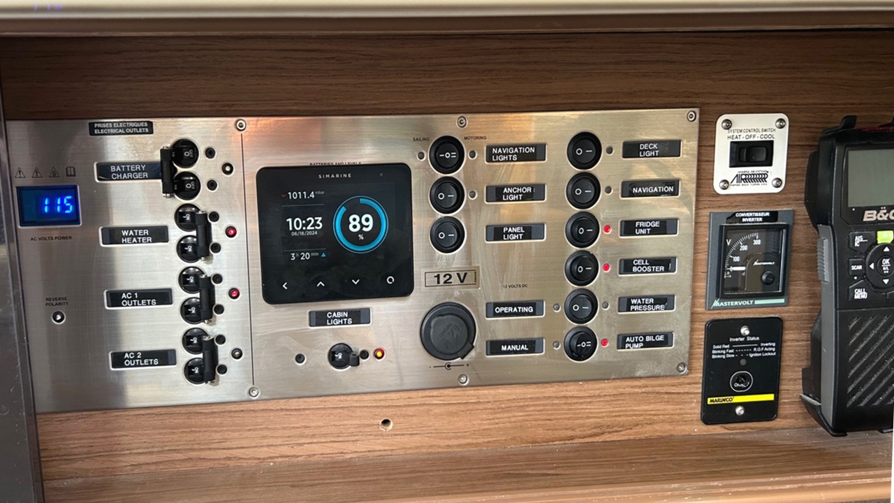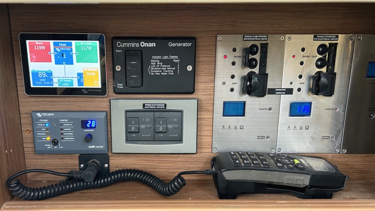 J1939 to NMEA interface - engine data on MFDs. Victron BMV-712 monitor and Multiplus Controller. Starlink Satellite mount on engine hoist and wired for Starlink.