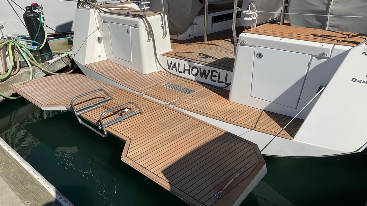 For those not familiar with the Sense 51, she embodies all the great elements of the Sense 50 with some significant improvements including an extended bow sprit/anchor roller, full height hydraulic lifting transom platform, permanently mounted seats at steering station, upgraded GROCO thru hull and underwater fittings, and reinforced hull deck joint at backstay.