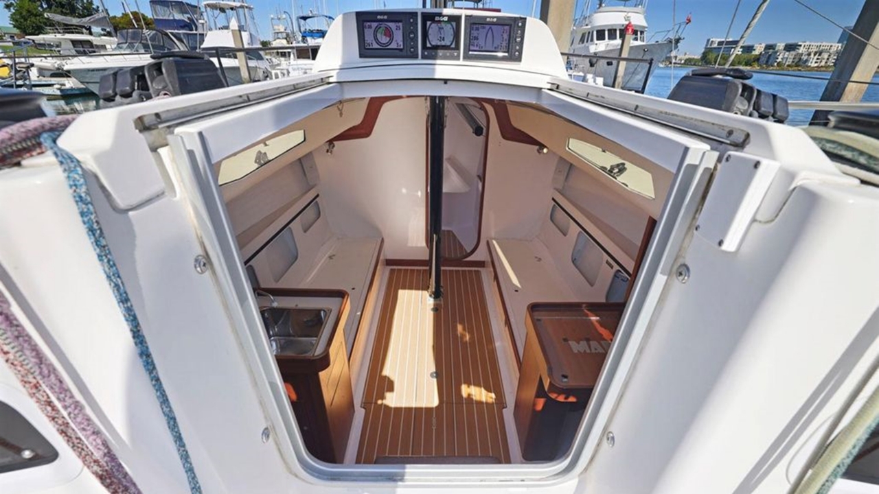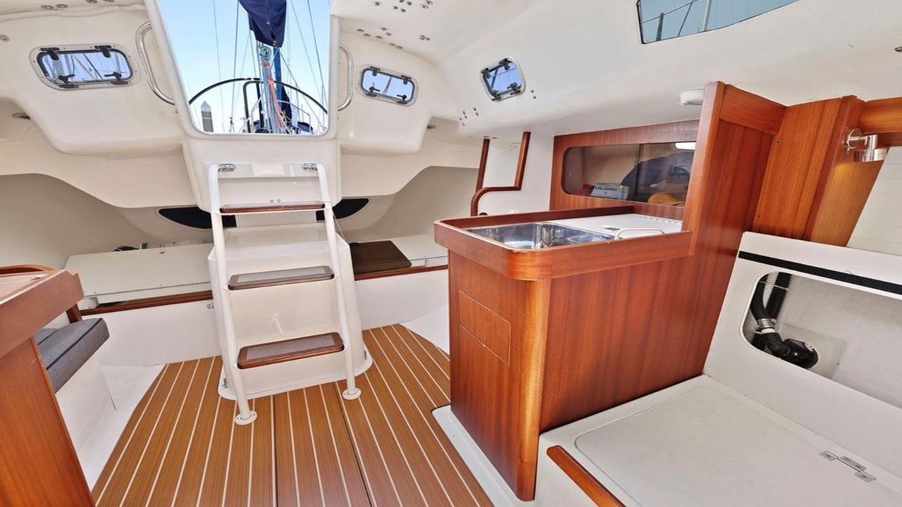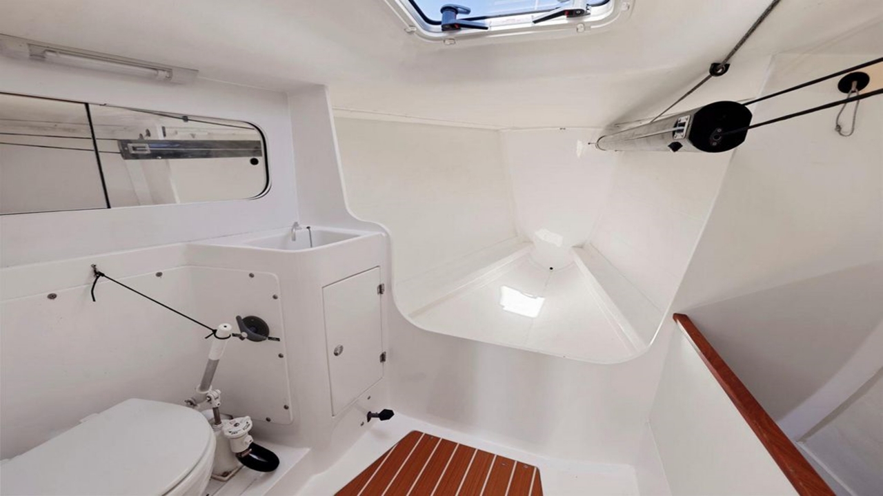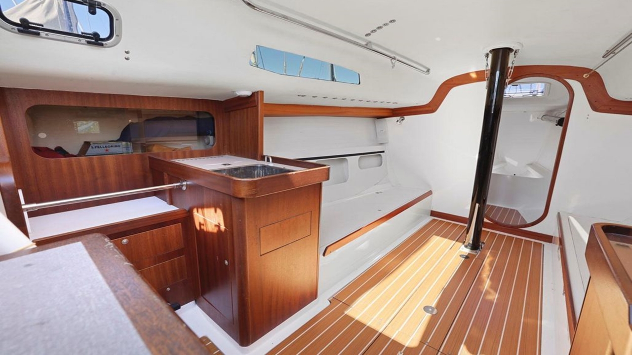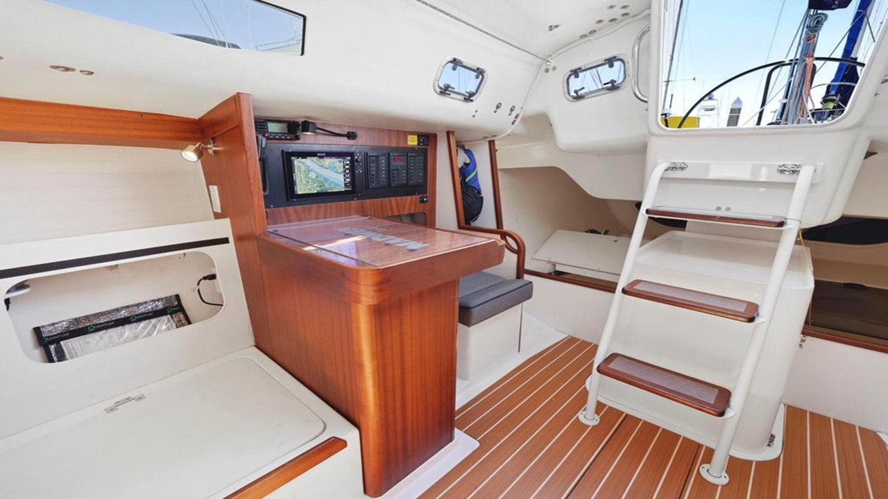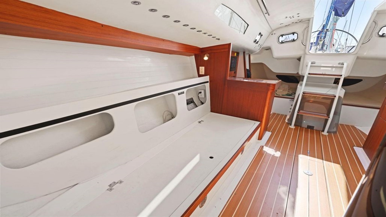 Open cabin with 4 berths. Also has quarter berths, sleeping 6 simultaneously.
