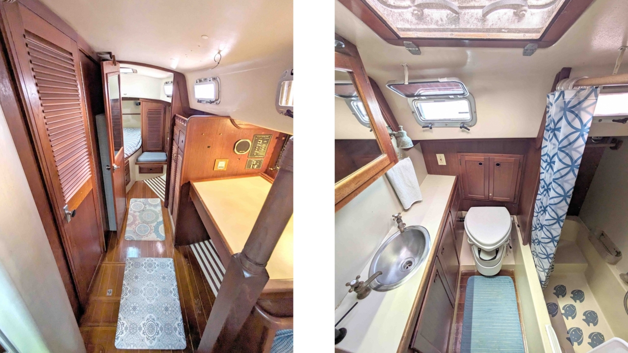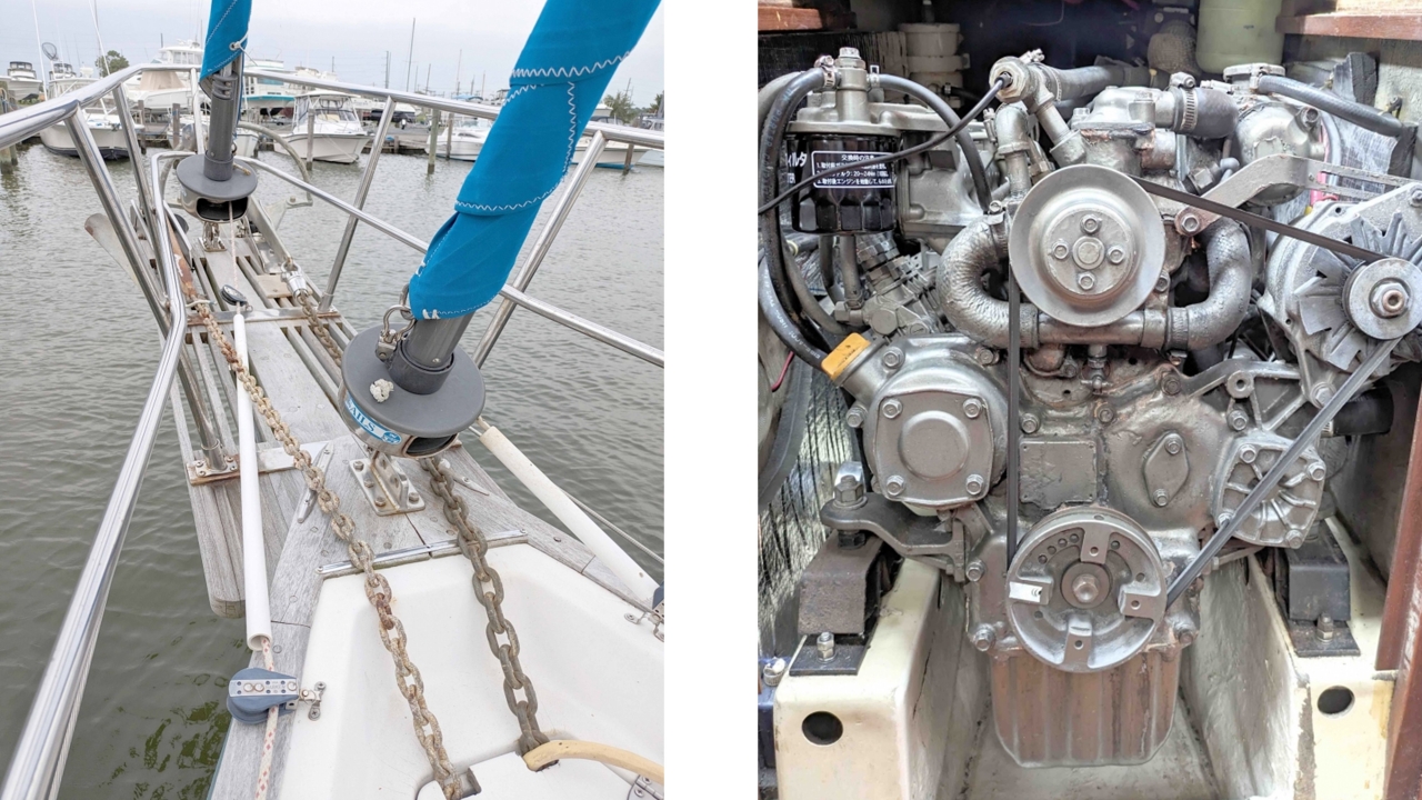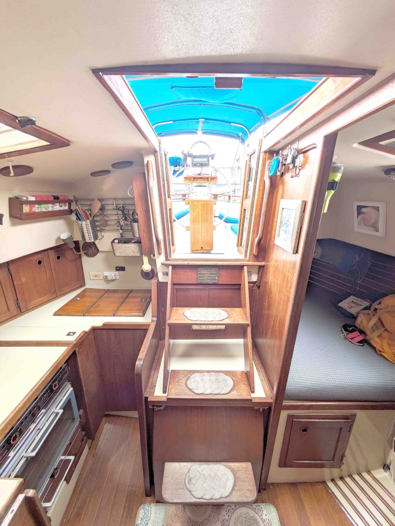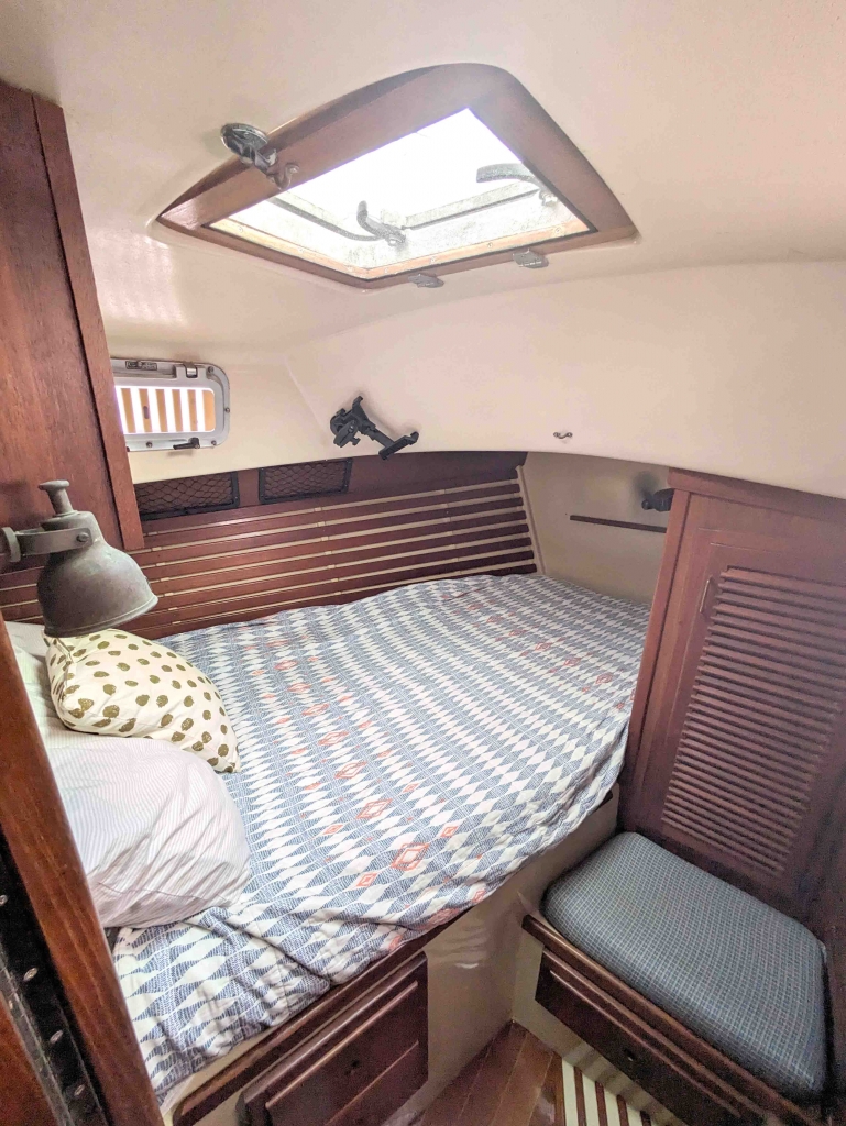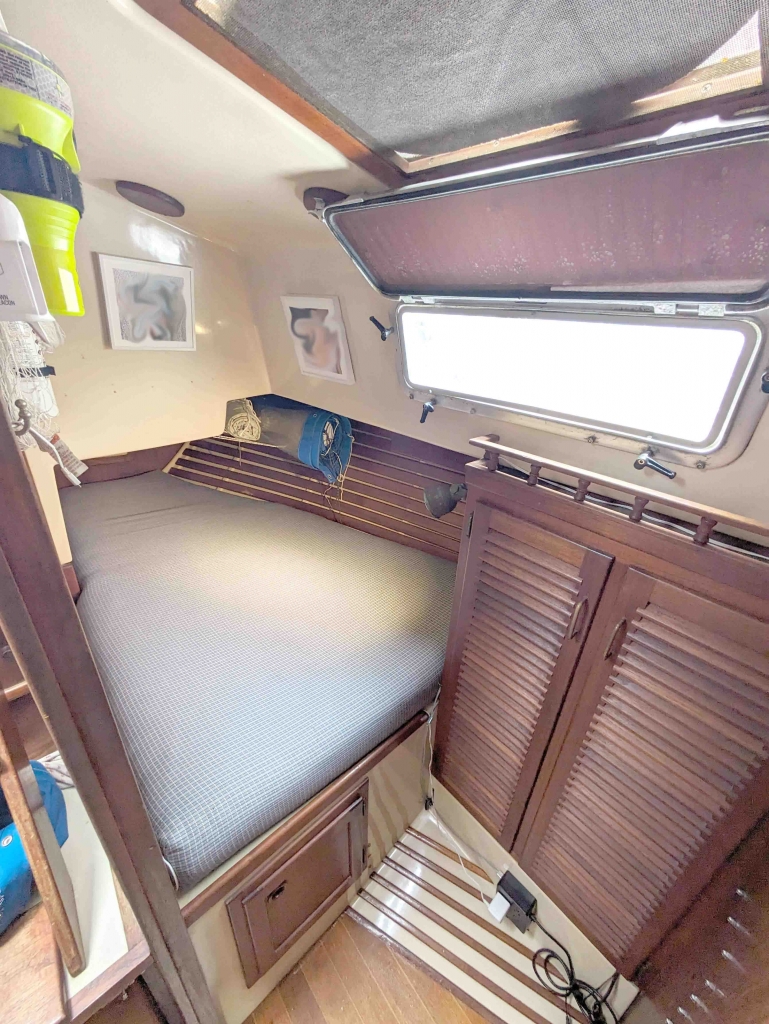 2022 rebuilt bilge pump system with “on” counter, high water alarm and primary and backup bilge pumps. All through hulls were upgraded to Marlon (superior since they don’t corrode and breakdown). 12v system with Xantrax battery monitoring system. 110v panel from shorepower or from 12v inverter. 2200W Pure Sine Wave Inverter 2021 wired to AC 110v panel. 2021 new house lead acid batteries 450 total amp hours. Rewired all 12v system from batteries to panel at that time. 2x190w solar panels (total 380watts) – each with independent Victron solar controllers. Air X 400 watt wind generator 2020 – new tri-color / new anemometer / new vhf cable and antenna / new steaming / deck light to LED when mast was down for rigging. 30 amp shore power with Xantrax 30 amp 12v batter charger. 2021 Espar Airtronic D4 (Eberspacher) Forced air diesel heater, tapped into diesel tank.