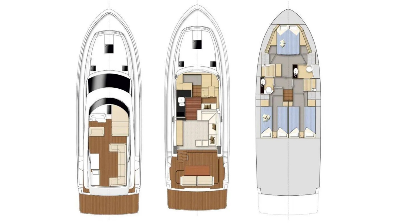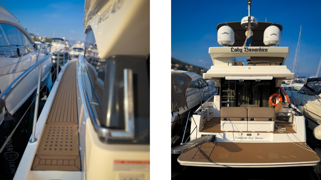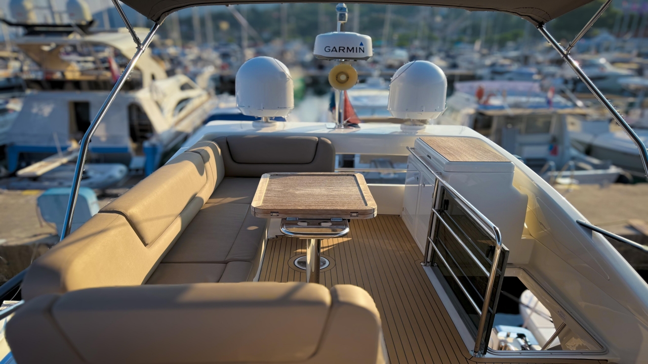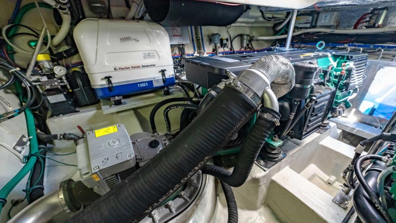 Features: 8KW generator, TVs in salon and staterooms, Fusion premium audio, Garmin electronics, satellite TV antenna, leather soft good surfaces, hydraulic swim platform, hydraulic salon table, 3 refrigerators, composite decking throughout exterior, camper cover, electric grill and fridge on flybridge, retractable passerelle, electrically actuated cockpit sun shade, warping winches port & starboard etc.