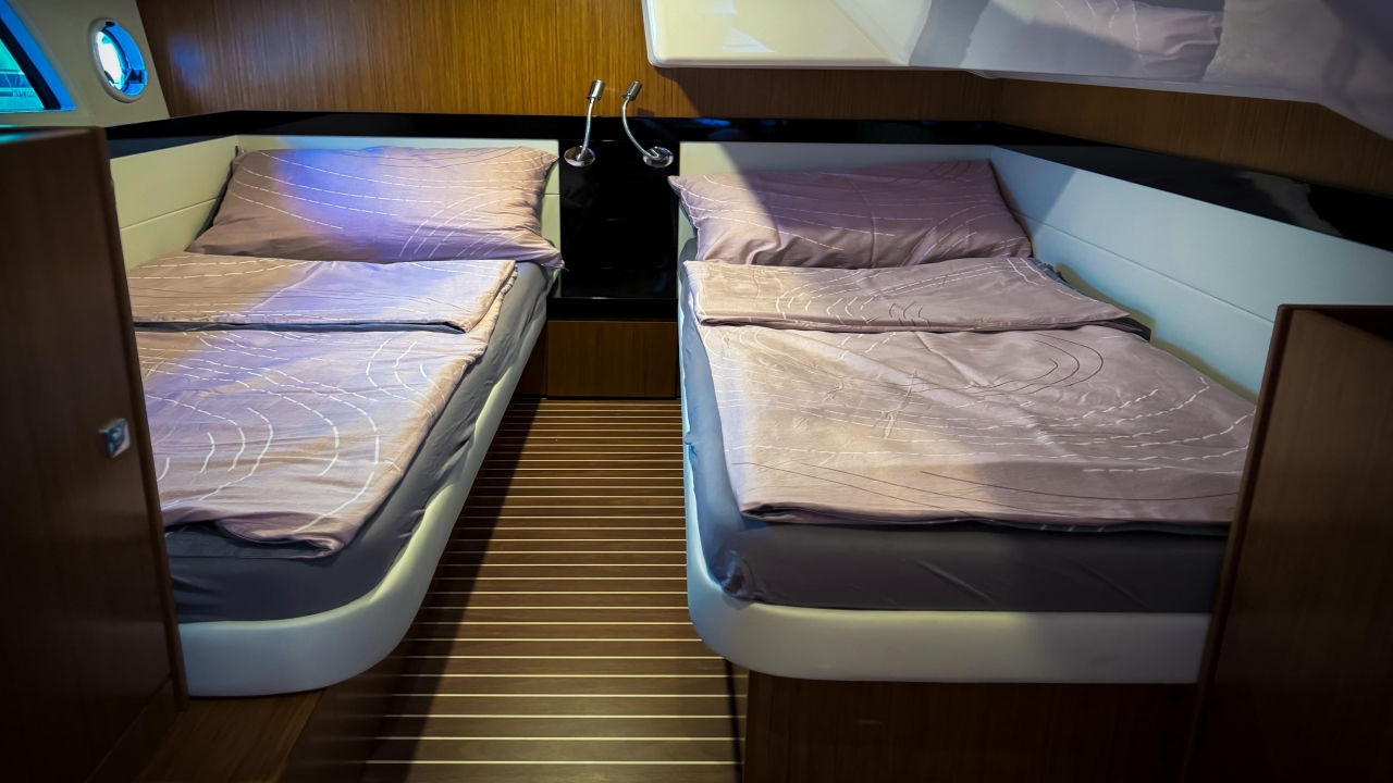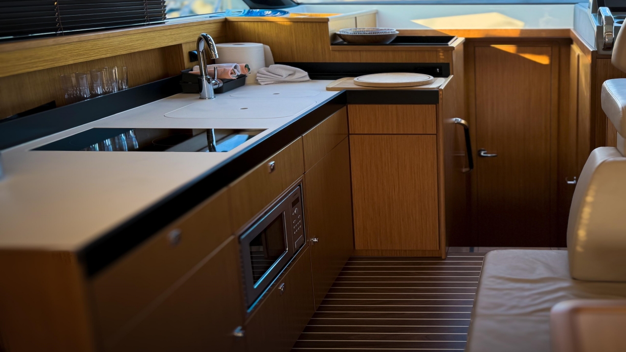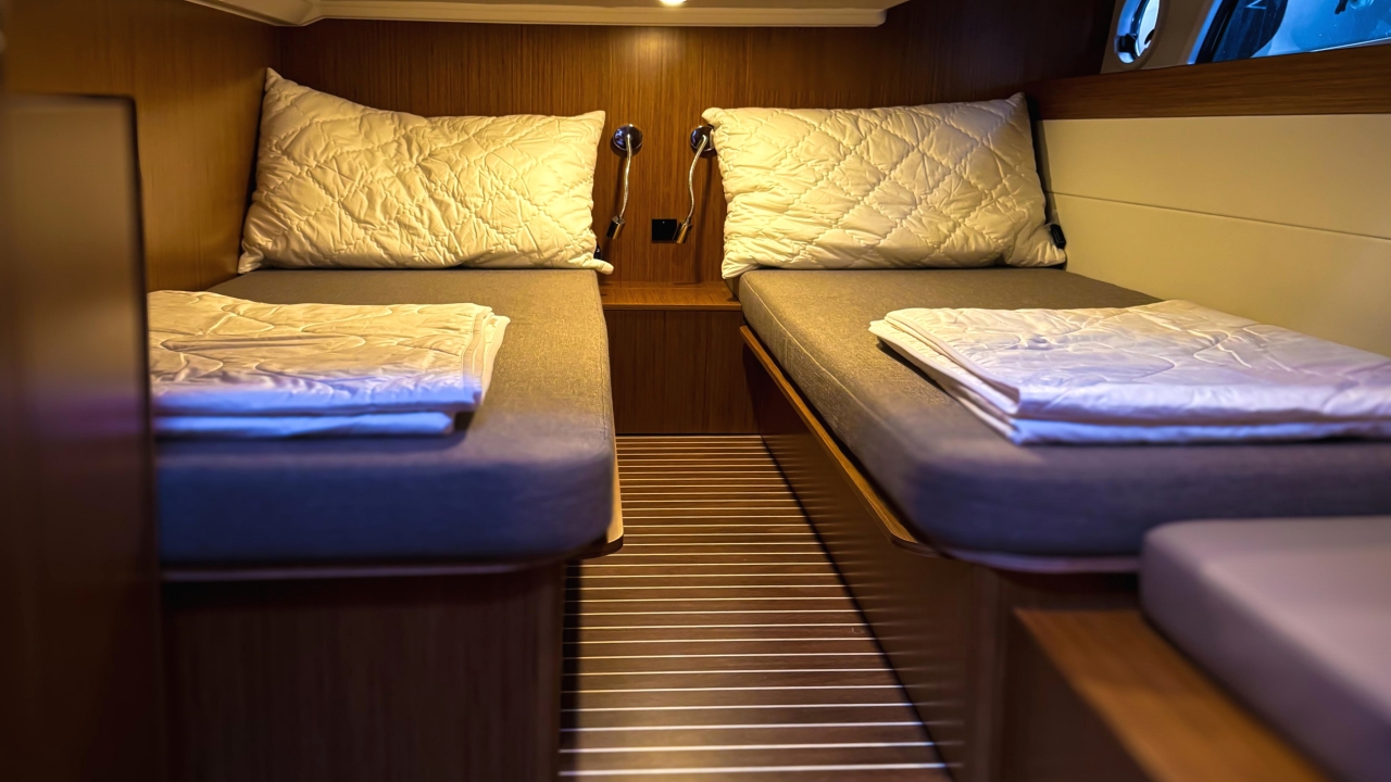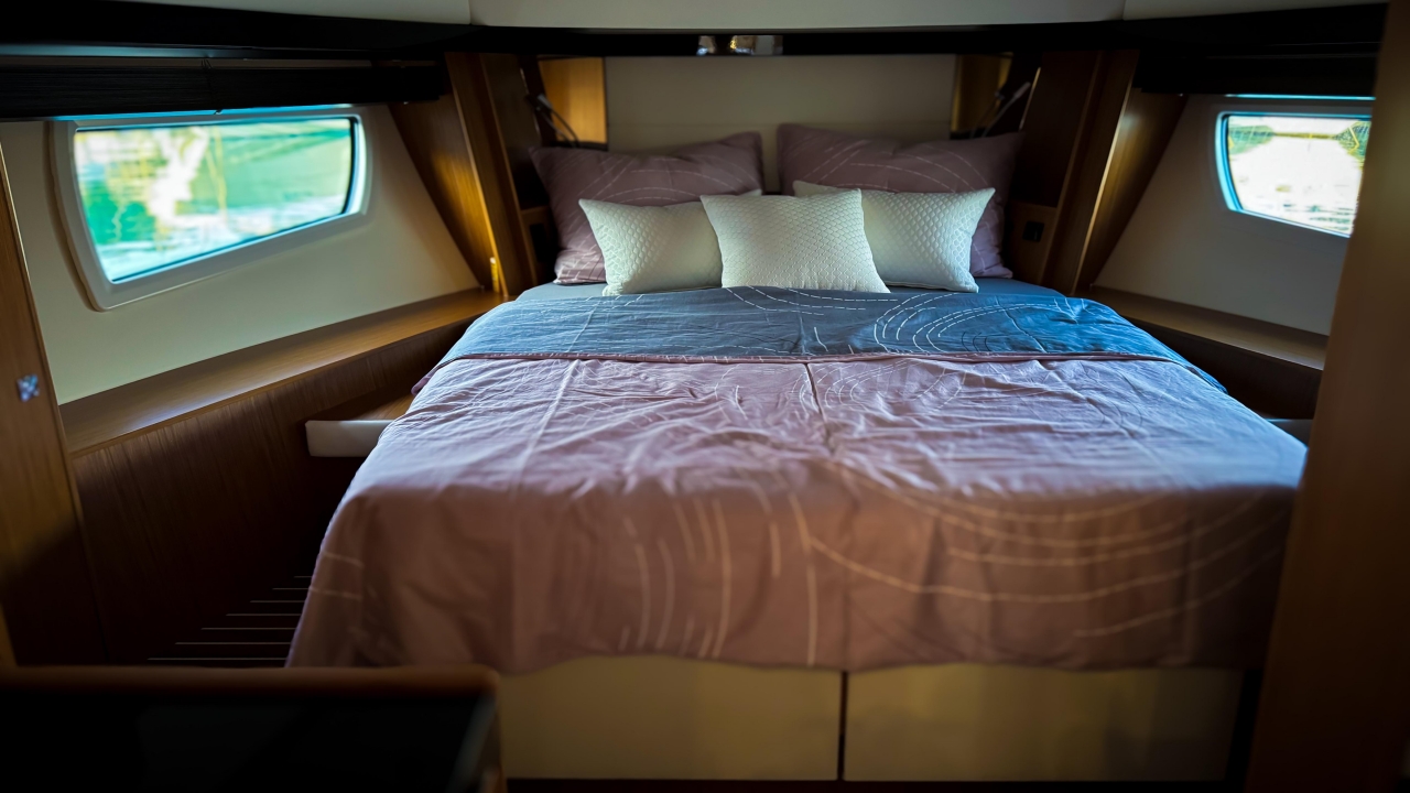 A two owner vessel, this yacht has just 240 hours on largest power option Volvo 435/IPS and has been very well maintained with no signs of usage. She was ordered fully optioned with all features available from the manufacturer. European VAT paid.