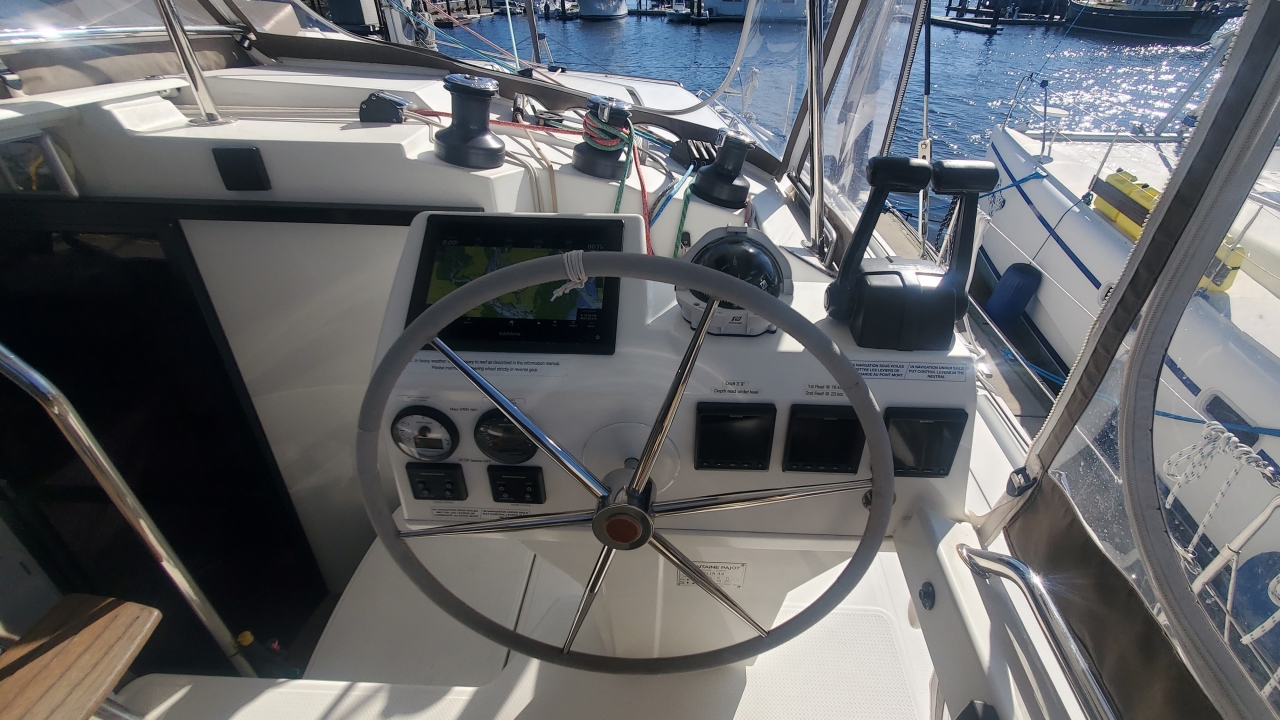 2880 generator hours. 5 bifacial solar panels for 2250W; 900Ah AGM batteries (2022); 5 Victron isolated MPPT controllers; Victron Cerbo (2025); 2 GMI 20 Marine Instruments at helm; Victron Smart Shunt; Balmar high output alternator with electronic regulator (2024). All Electronics professionally installed by MES-Marine Electric Systems in Annapolis, MD (2022).Upsized Rockna anchor; NEW upsized 12mm anchor chain; NEW bow roller & reinforcement; automatic shore power relay 50A for US and 32A for European receptacles & cords.