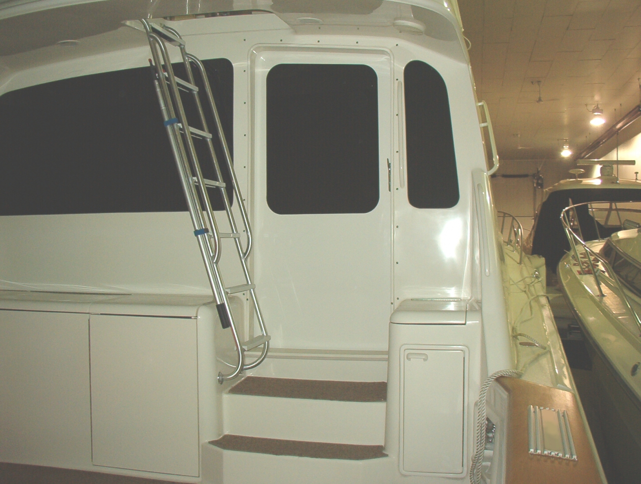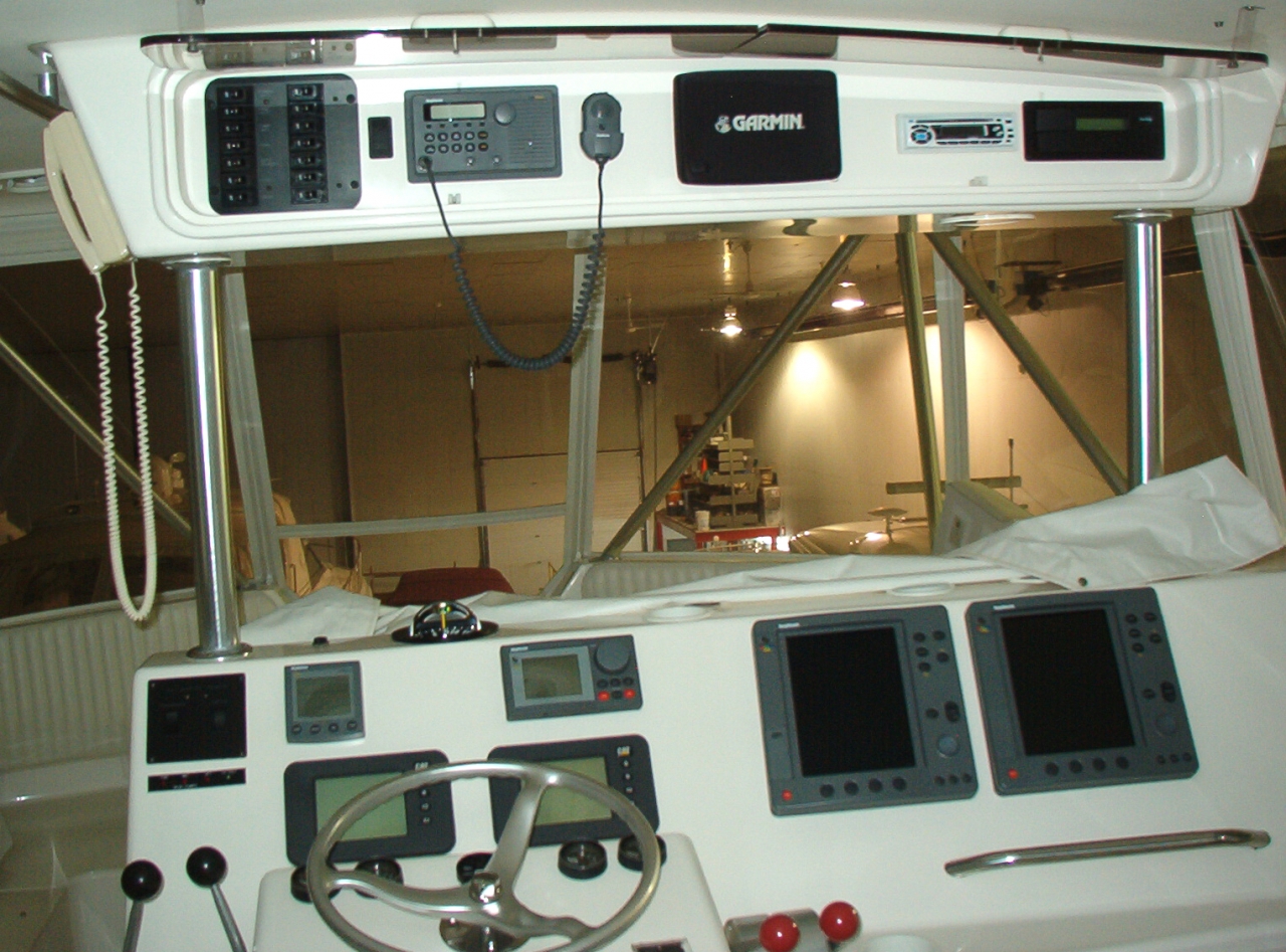 Large cockpit with fully equipped fish station w/sink and lower controls. Live well, chiller also.