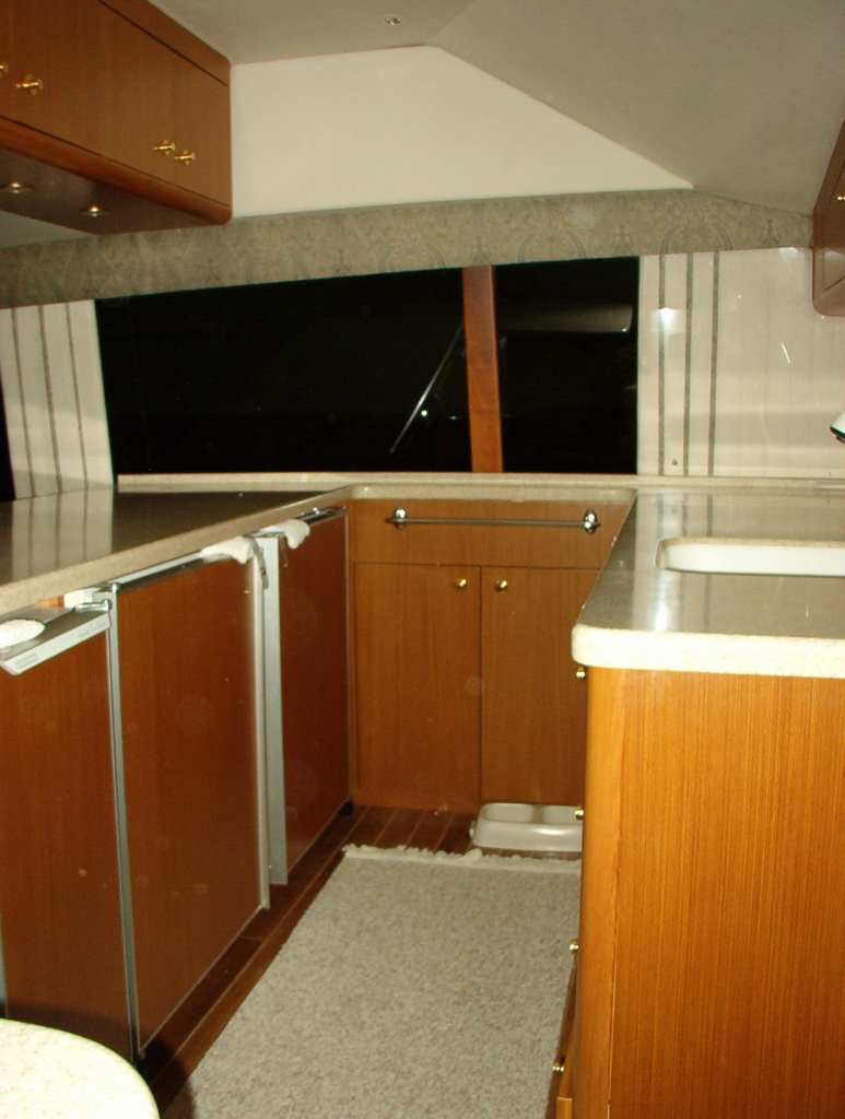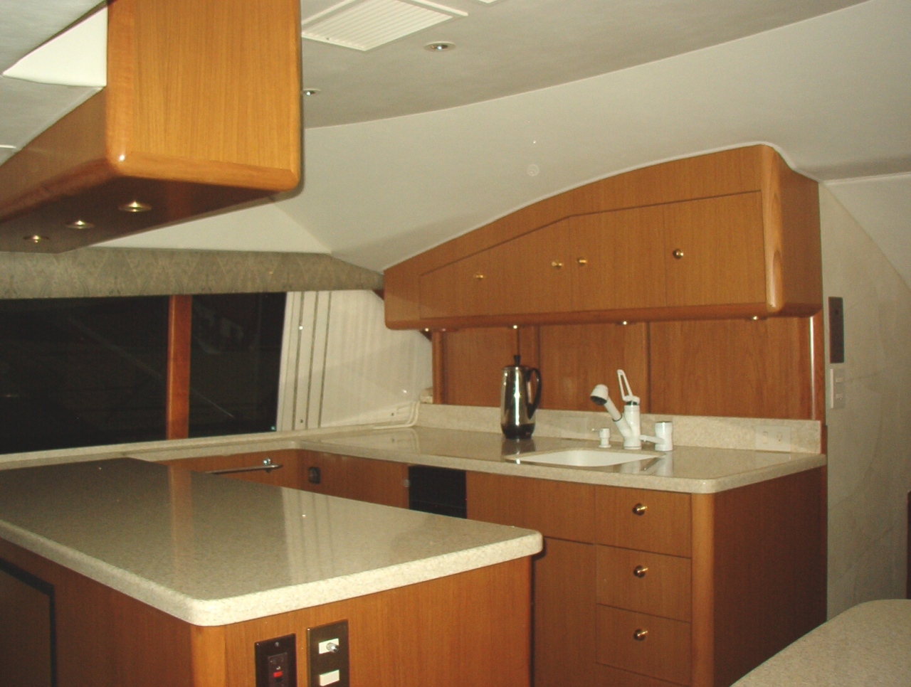 Wood sole, Corian countertops, water tank gauge, trash compactor, instant hot water and icemaker.