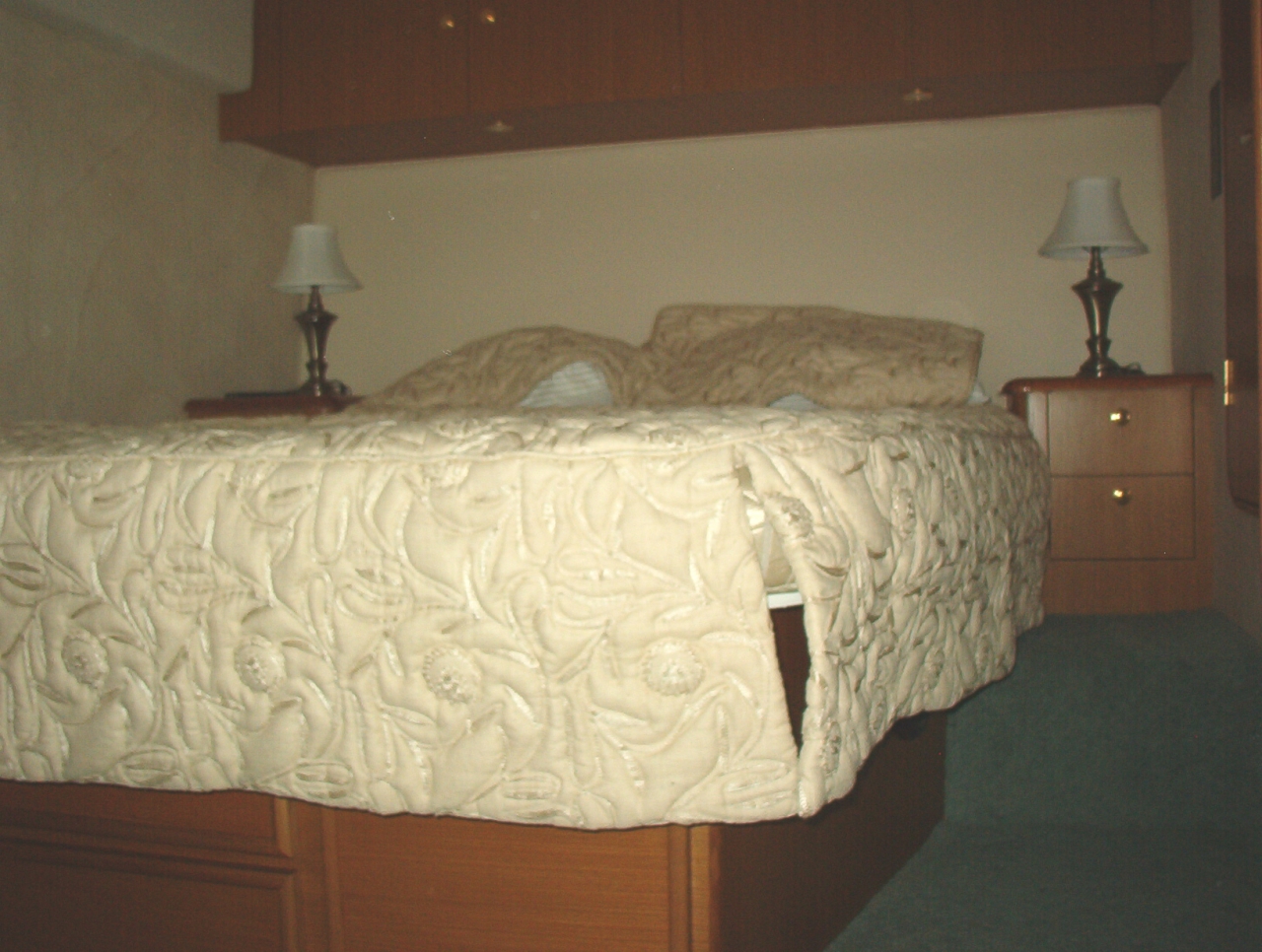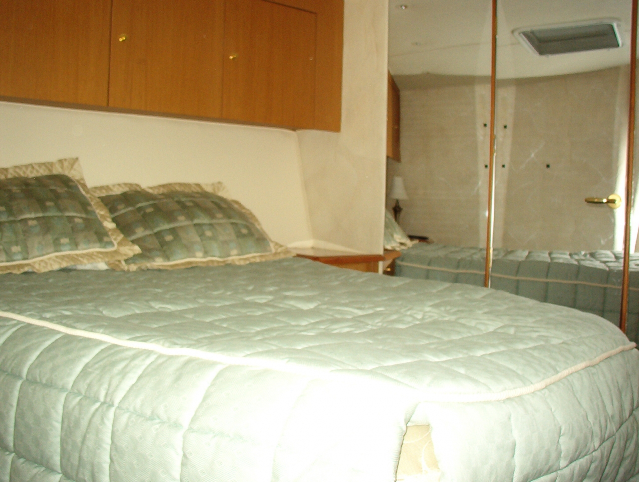 The master stateroom feature an island queen berth, TV/VCR, stereo with CD player, extensive storage and private head with stall shower.
