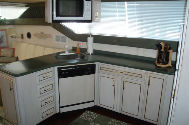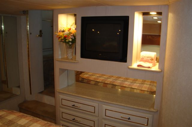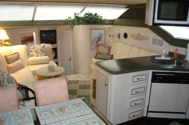 The Mainship 47 Motor Yacht is a 2 stateroom/2 head flush deck setup that features a large, uncluttered flybridge with plenty of seating and storage, and wide molded fiberglass steps offer safety and comfort. Below, a spacious salon, workable galley, easy to maintain heads and truly comfortable staterooms are incorporated to provide good flow and the most usable space afloat.