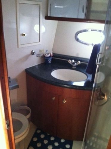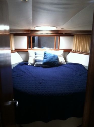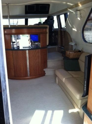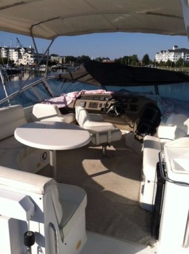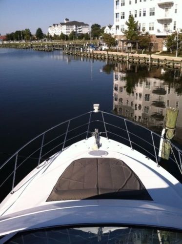 The Carver Voyager 450 offers 2 helm stations, 2 staterooms each with a queen berth and private head. The salon offers a comfortable entertainment area open to the raised helm and seating area. The flybridge is well laid-out with plenty of seating and the cockpit offers water level access to the salon with molded stairs to the flybridge.This Voyager has just 315 hours of displacement speed cruising on optional Volvo diesels. No stress cracks, blisters, oxidation, leaks, mold or bilge water odors. Run exclusively in low-salinity upper Chesapeake bay waters.