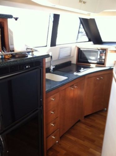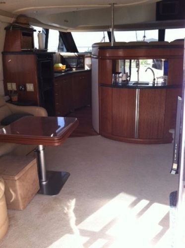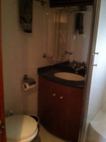 Upgrades: electronics ($20K), satellite TV, bow and stern thrusters w/remote, low profile davit and single lever controls. Updates: Flybridge stereo w/USB for phone. Low maintenance Plasdeck synthetic teak cockpit sole. Galley fridge. Flat screen TVs in salon and guest stateroom. TV antenna for local broadcast. Covers and bimini. Batteries and cables.