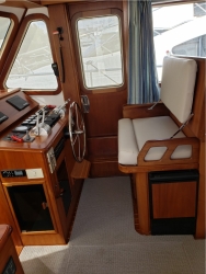 The Sabre/Sabreline 47 Fast Trawler was introduced in 1996 and has since become one of the most popular downeast style motoryachts on the market. Her rugged good looks, beautiful interiors and classic style set her apart from other boats in her class. Sabre’s reputation for high quality fit and finish is evident throughout the interior of this yacht. American cherry furniture with laminated trim fiddles, dovetailed drawer boxes, plush fabrics and comfortable seating surfaces make this a luxurious space in which to entertain or to relax with family and friends.