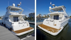 This particular boat is in exceptional condition with upgrades/updates: new flooring throughout the salon and staterooms; new Kohler 13Kw generator with less than 75 hours with remaining warranty; optional Volvo 480 diesels with less than 550 hours; and flybridge hardtop. All new engine fluids and full fuel tanks - ready to cruise! Seller has boat on the way and is motivated!