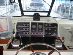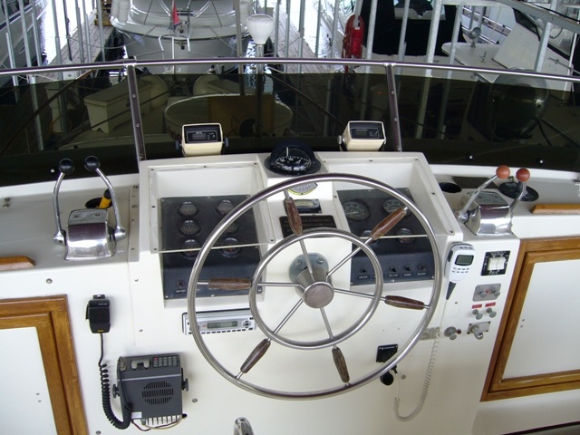 This is a classic example of the Trojan quality in excellent condition.  Fully enclosed aft deck, teak wind doors, new carpets, curtains and many upgrades make this a great candidate for a live aboard.  Wide side decks and easy fly bridge access make moving around easy and safe.  This yacht is clean and ready to cruise.