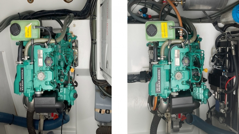 Features/options: climate control; 7.5KW generator (230 hours); upgraded engines (500 hours), 2025 sail drive service; 270W solar with 480Ah batteries (2025); teak aft deck; optional stainless steel galley freezer; 12V water maker; AB tender on stainless davits; 2 sets of full enclosures; upgraded folding 3 blade props etc.