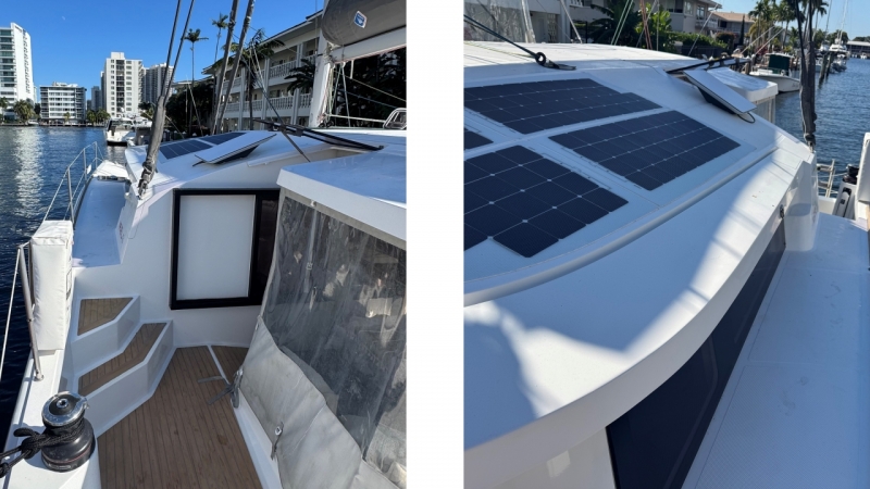 Electrical System: 60Hz 50amp shore power with 50’ SmartPlug shore power cord with additional 50’ Marinco extension cord. Solar panels: 2kWh. 15 custom SP series Solbian walk-on panels (5 not yet installed) w/ 8 Victon MPPTs and two distributors. Batteries: 1700Ah house battery bank. (4) 300Ah lithium computer tied to (3) 165Ah AGM back-up batteries. 300 hours on GSi6000 generator.