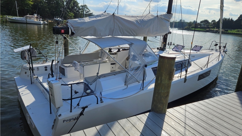 US documented and imported (saves tariff, import duties and shipping/delivery cost and avoid the build wait). Heavily optioned and lightly used performance yacht lift-kept in the Upper Chesapeake Bay. She holds ORR/ORC certificates, is STIX certified and first large Pogo to qualify for Newport-Bermuda Ocean Race (NBR). Note, she has a second (unused) Bimini/dodger not shown in these photos.