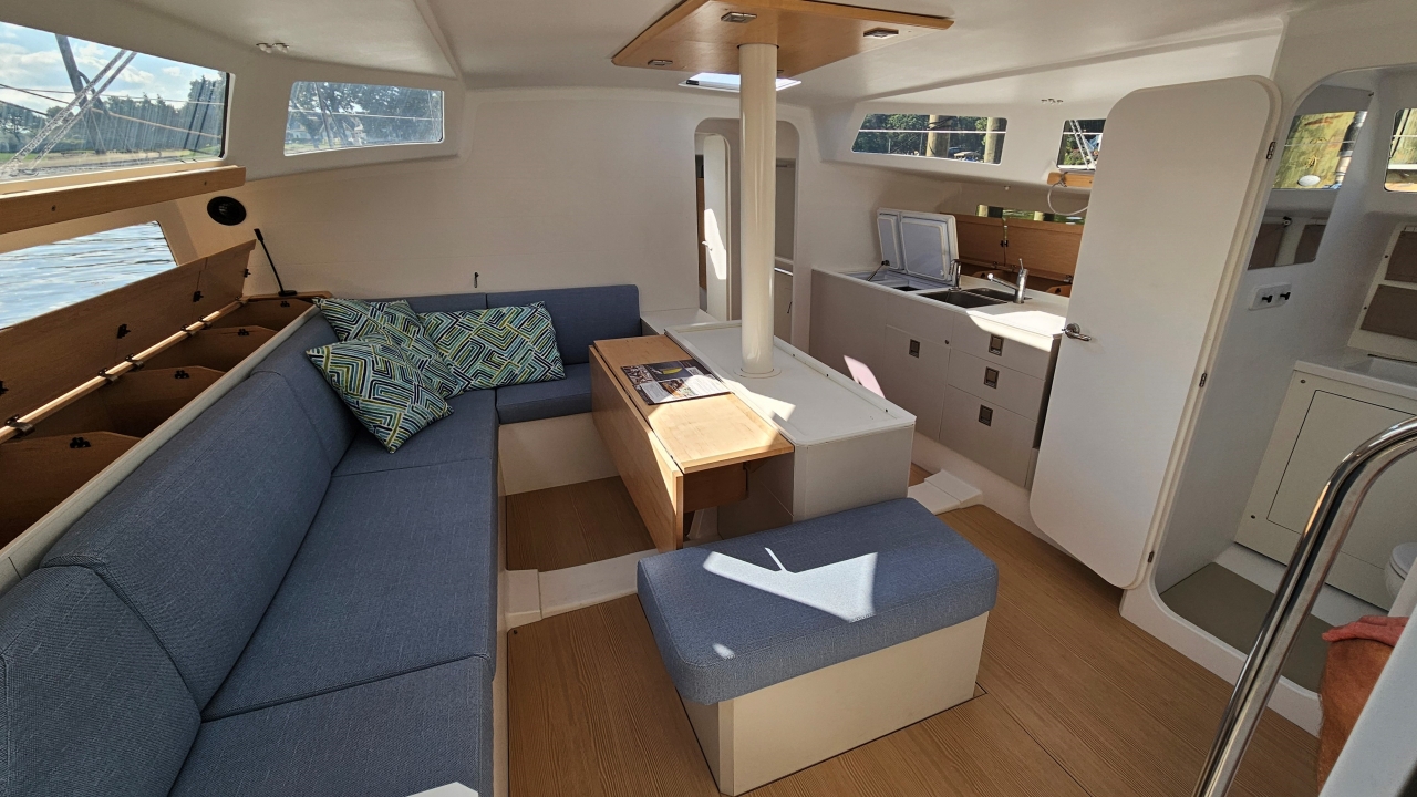 Known to ocean racers worldwide, the Pogo44 is a revered performance yacht designed by Finot-Conq and built by Pogo Structures in France. Incorporating technology and design developments from previous models, she features a very robust structure, highly stable planing at 14 - 20 knots (wide beam/flat aft sections), excellent pointing while also tunable for sailing from all points of sail (deep retractable keel), ultra light weight (optional carbon) mast, huge sail area (square top main) and (unsinkable) foam coring.